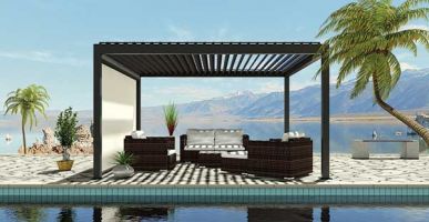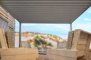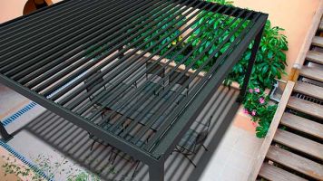 Möglich wird dies durch das Herzstück des clima Q.bus: Das Lamellendach. Durch eine clevere Verstellmechanik lassen sich die Aluminiumlamellen komfortabel motorisiert zwischen 0 und 125 Grad wenden, was zahlreiche Vorteile mit sich bringt. Beim Aufenthalt auf der Terrasse ist so ein ganz individueller Blendschutz möglich. Durch das Öffnen der Lamellen erfolgt zudem eine natürlich Belüftung, so dass keine Hitzestaus unter dem Freisitz zu befürchten sind. Ziehen Wolken auf, schützen die Lamellen im komplett geschlossenen Zustand vor Regen. Und auch der Umkehrfall ist möglich: Wenn ein maximaler Lichteinfall gewünscht ist, beispielsweise in den Wintermonaten, ist auch das durch den sehr großen Verstellbereich der Lamellen problemlos möglich. Optional sorgen seitlich integrierte Senkrechtmarkisen zusätzlich für Sicht- und Sonnenschutz.